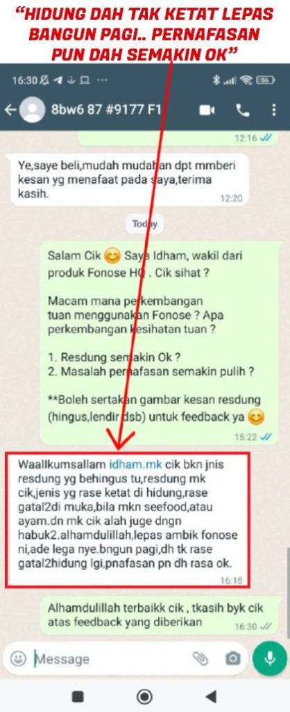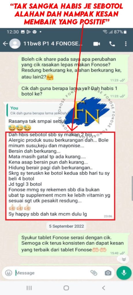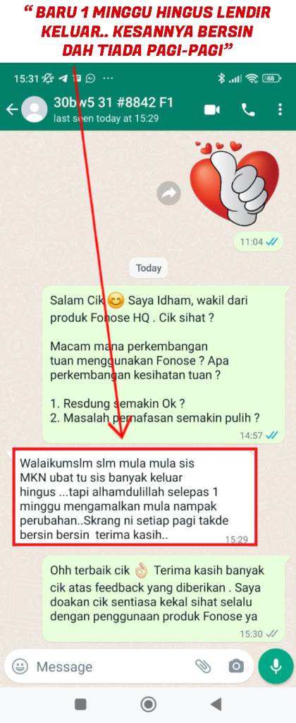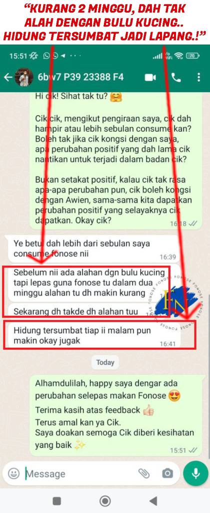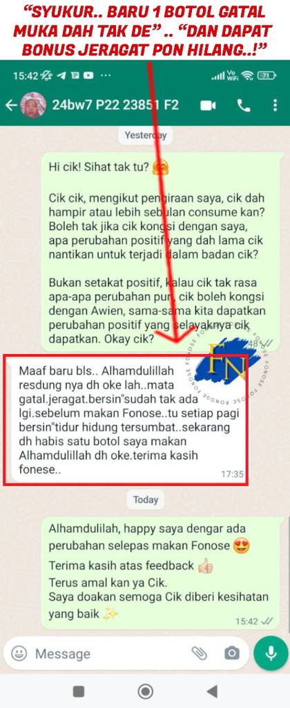 • Tapi disarankan untuk teruskan kosisten amalkan, bukan apa Fonose bukan sahaja bagus untuk Resdung malah mengandungi bermacam khasiat lain untuk pastikan tubuh kekal sihat dan In Sha Allah terhindar dari penyakit, Aamiin